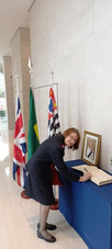A Major Philippa Chagas assinou o livro de condolências no Consulado Britânico em São Paulo.